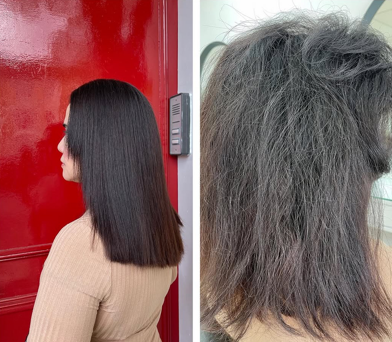 Föhn het haar volledig droog.